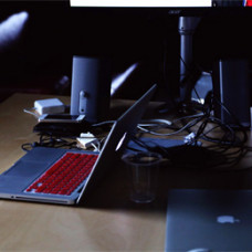 Я выбрал место сзади стола, внизу, и развернул углом вниз, образуя своего рода нишу, куда легко можно закинуть блок питания ноутбука.
